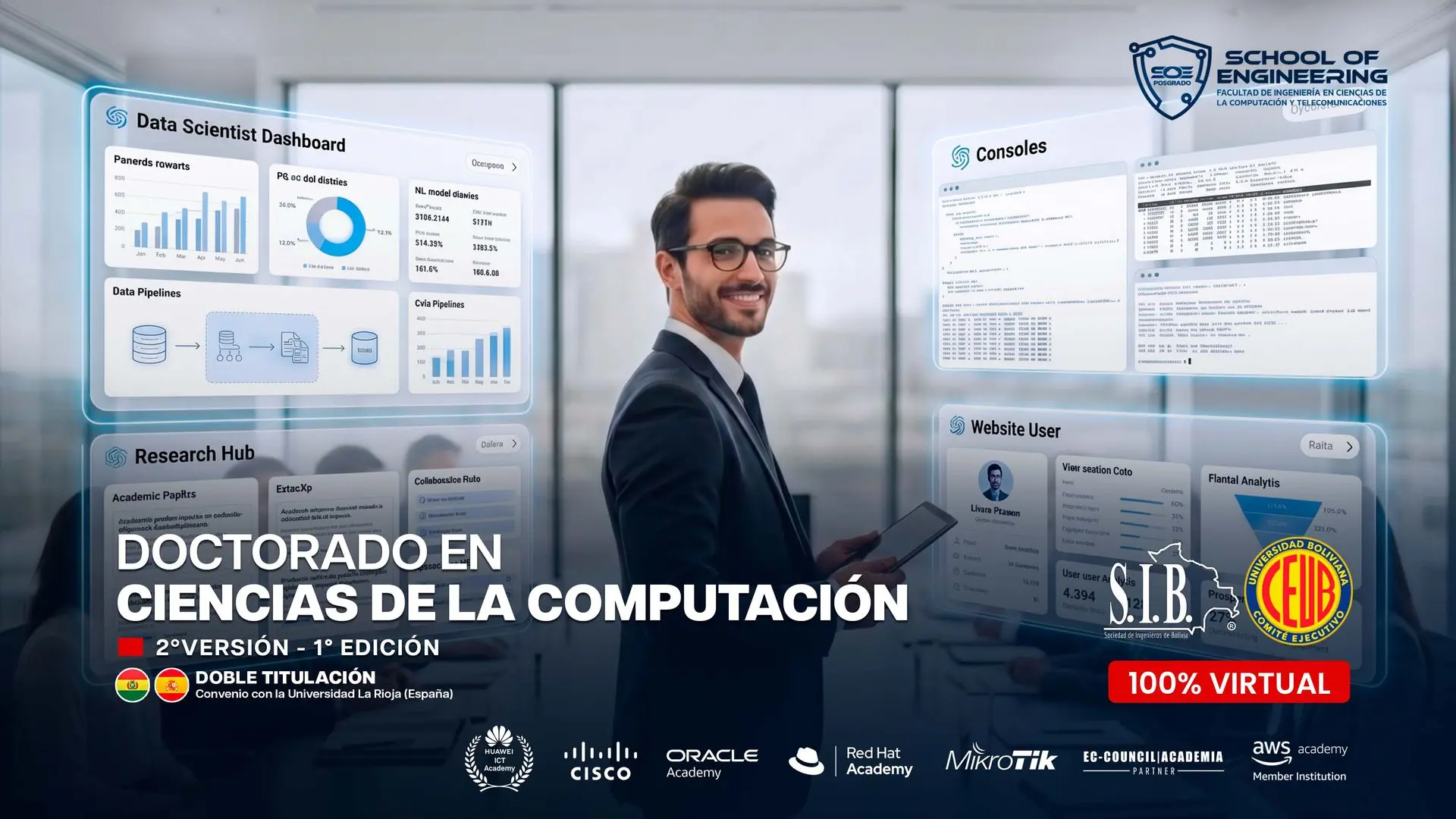 El Doctorado en Ciencias de la Computación de la Universidad Autónoma Gabriel René Moreno (UAGRM) está diseñado para formar profesionales altamente capacitados en el desarrollo, aplicación y gestión del conocimiento científico-tecnológico en el área de la computación. Sus contenidos esenciales abarcan fundamentos avanzados de inteligencia artificial, ciencia de datos, algoritmos, arquitectura de sistemas, ingeniería de software, computación de alto rendimiento y seguridad informática, integrando sólidas competencias metodológicas para la investigación científica.