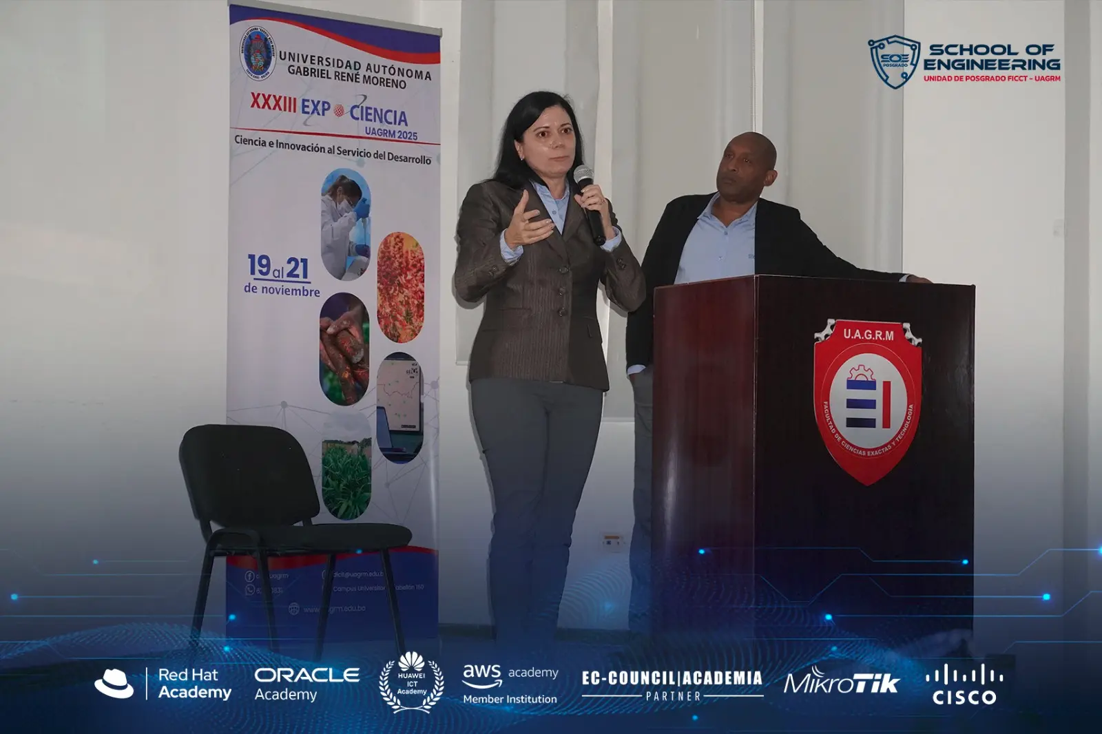 La Dirección de Investigación, Ciencia, Innovación y Tecnología (DICIT), bajo la conducción del M.Sc. Emilio Jaime Gutiérrez Valdivia, desarrolló el Foro: “Inteligencia Artificial y Transformación del Conocimiento en la Educación Superior”, uno de los eventos centrales de la Expociencia U.A.G.R.M. 2025, realizado el 20 de noviembre en el Salón Auditorio de la Escuela de Ingeniería de la Facultad en Cs. Exactas y Tecnología – Ex Inegas.